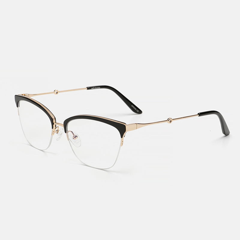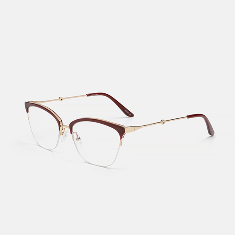 Glasses for women, cat-eye style, with semi-rimless frames, with a mixed structure of burgundy acetate and gold metal. It includes a small hole in the temples to hold your MÓ laces, which gives the MÓ DIANA model a more sophisticated touch.