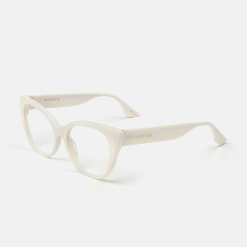 The Gisele Jr. model are glasses for women, in tortoiseshell acetate, with a cat-eye silhouette and a wide profile. They belong to our FRONT ROW capsule. These glasses are accompanied by a case bag and chamois matched with the color of the frame.