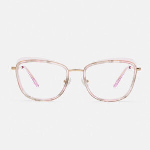 Rectangular men’s glasses in burgundy acetate and silver metallic decorations.