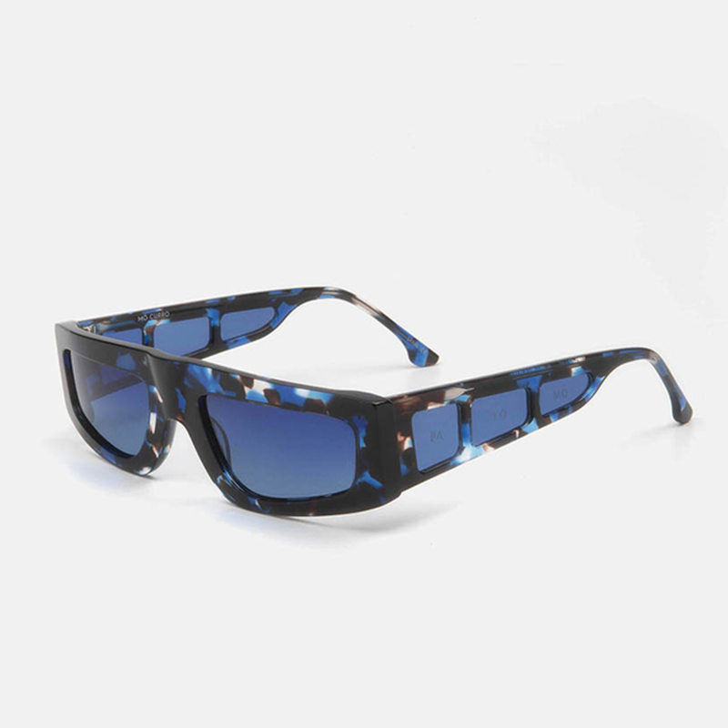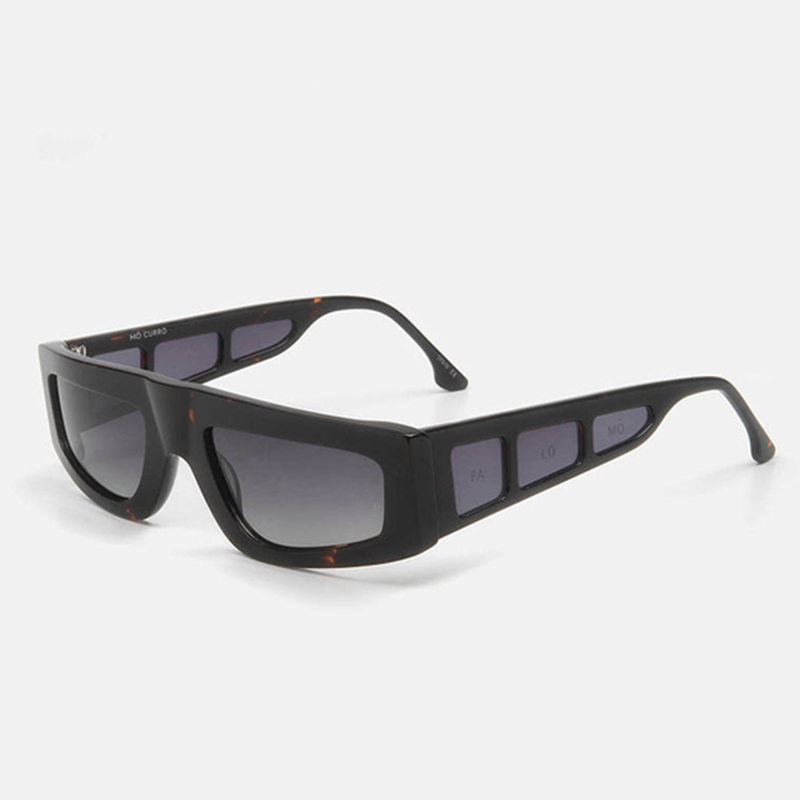 Sunglasses created in collaboration with the renowned Cordovan designer Alejandro Palomo, from PALOMO SPAIN. The Curro model is unisex with an “oversize” rectangular silhouette, with a futuristic air in dark bluish tortoiseshell acetate. It offers an avant-garde design to break with the norm thanks to small lenses that decorate both temples. The lenses of this model, which promise to elevate any look, are polarized for sharper vision and better contrast. This model includes a black leatherette sports “mini bag” format case, with a strap that allows wear it hanging