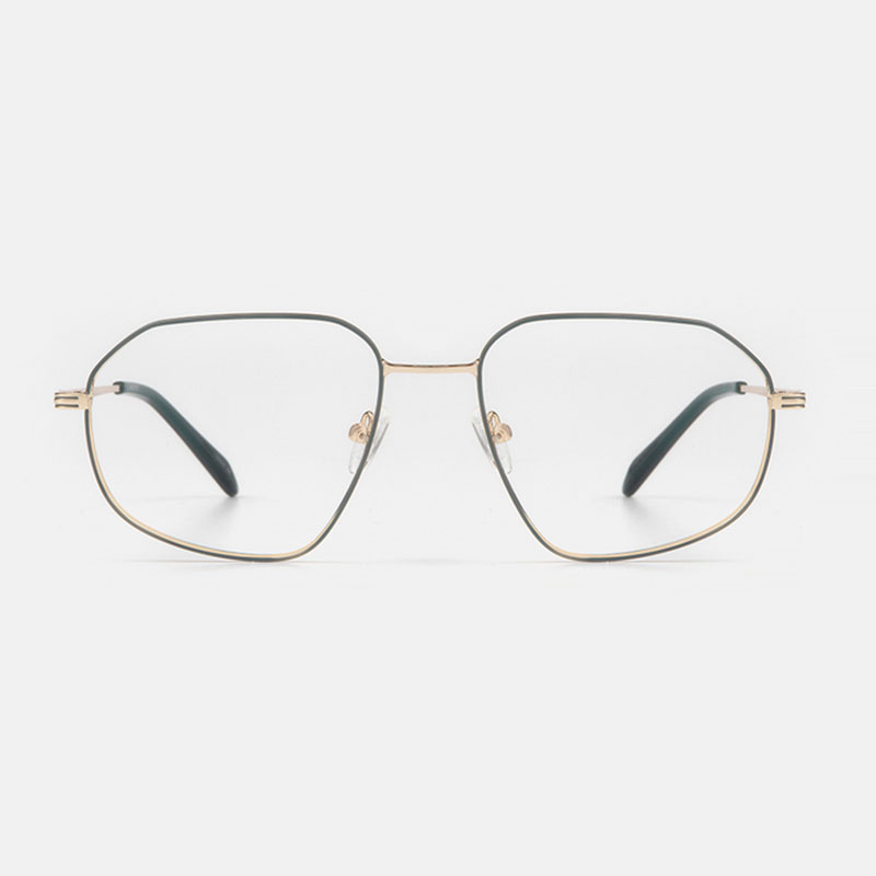 Unisex glasses, with an oversize retro aviator shape, in golden metal, on the temple the metallic relief of the collection stands out, which elevates the glasses and gives personality to the frame.