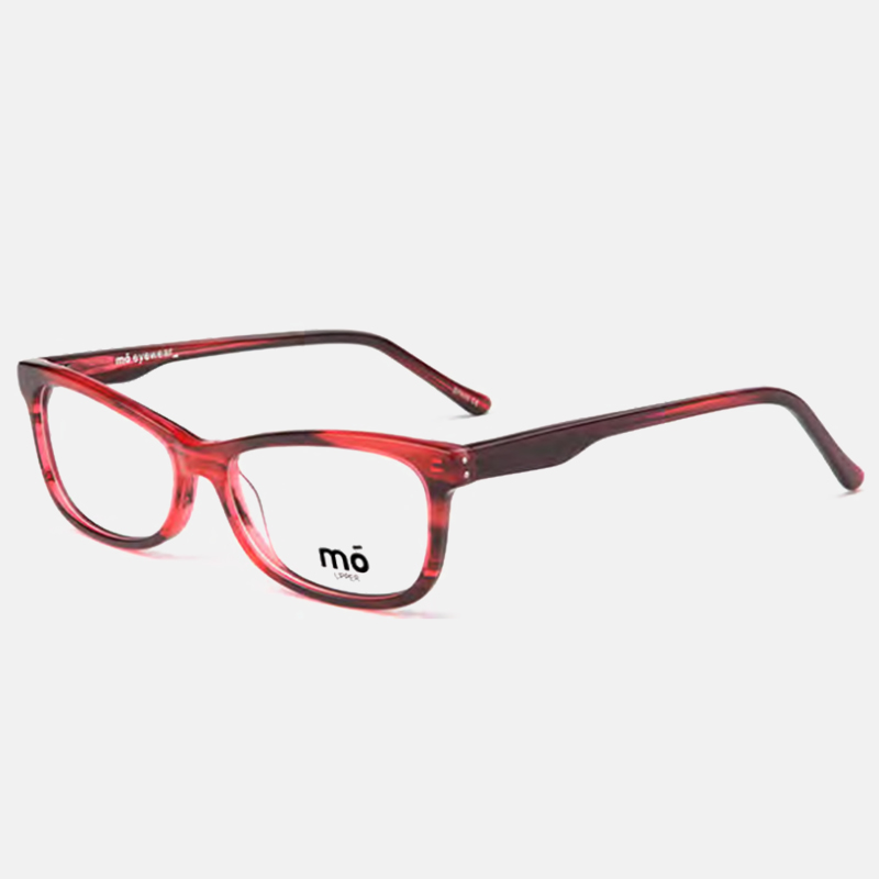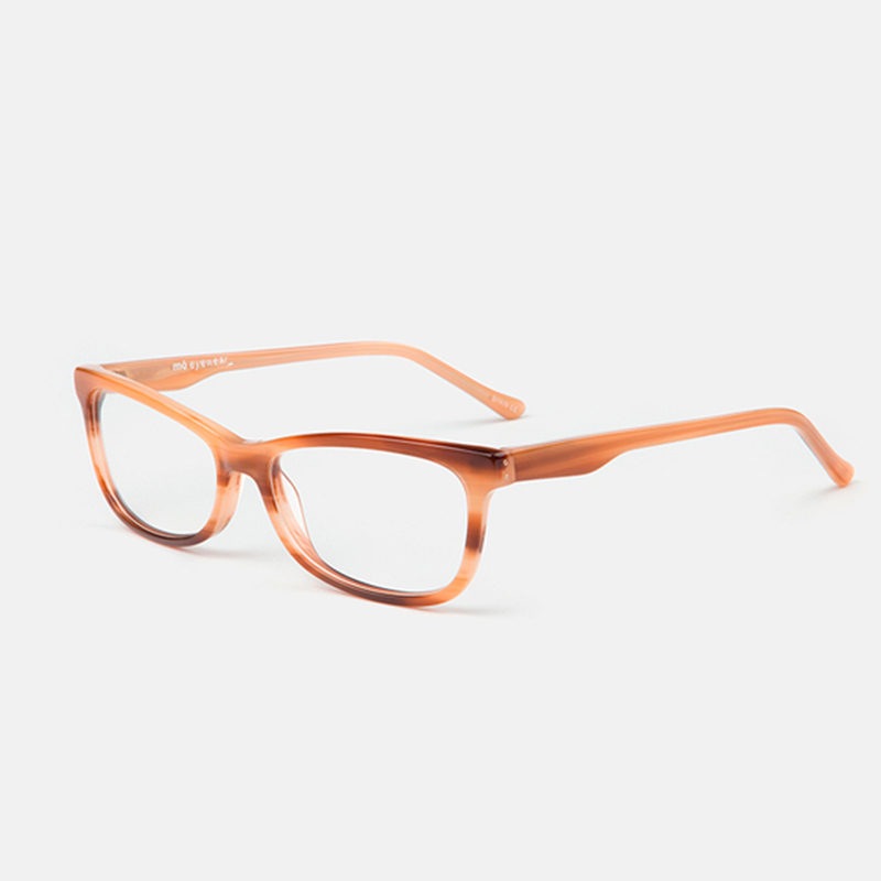 Glasses for women, with a rectangular frame, in brown acetate. There is crystal detailing on both sides of the frames.