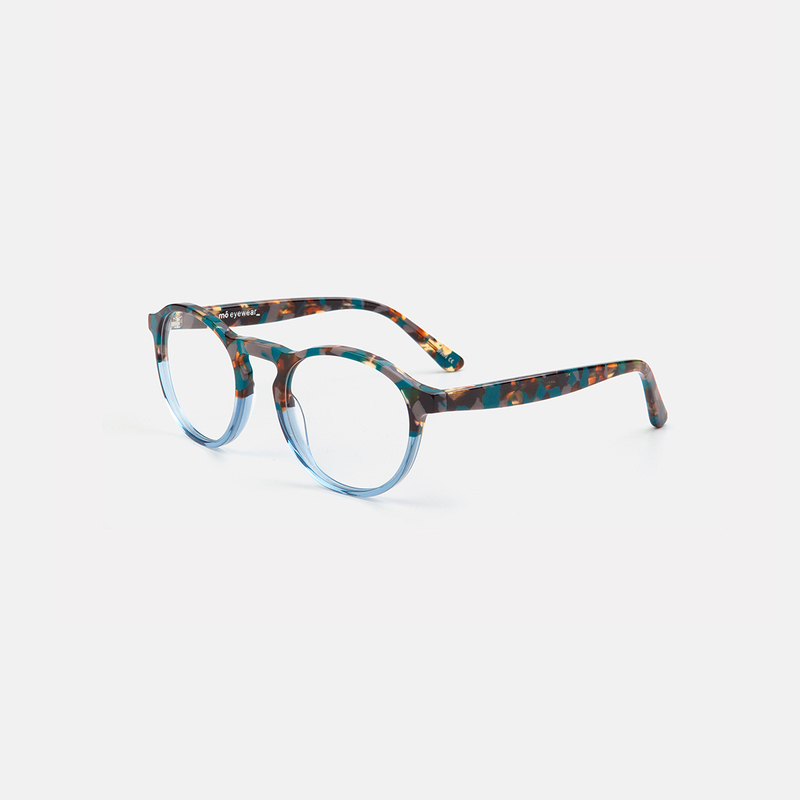 Round-shaped unisex sunglasses in Havana acetate with blue tones.