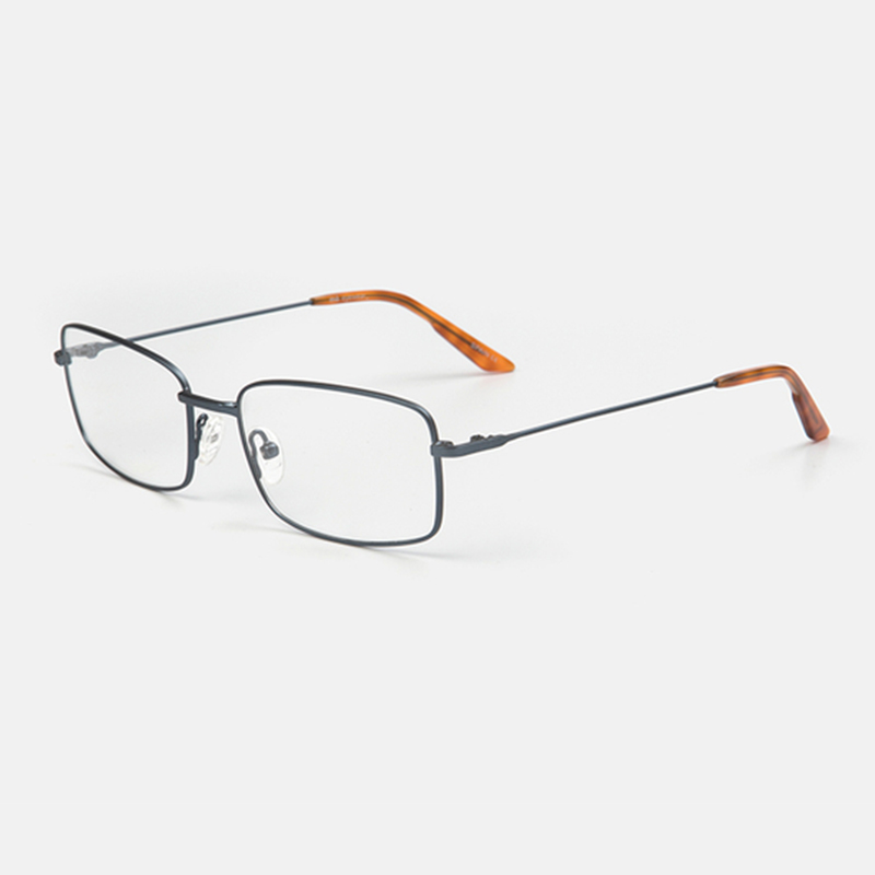 Glasses for men, with a rectangular shape and a classic design. Made of metal in steel color.