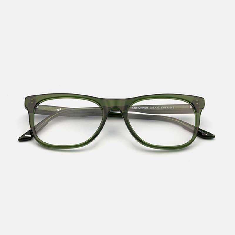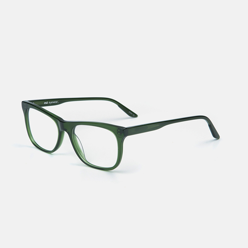 Square silhouette unisex glasses, made of green acetate.